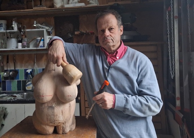Jan-Willem van Oldeneel, beeldhouwer wonend en werkend in Laren (NH).
